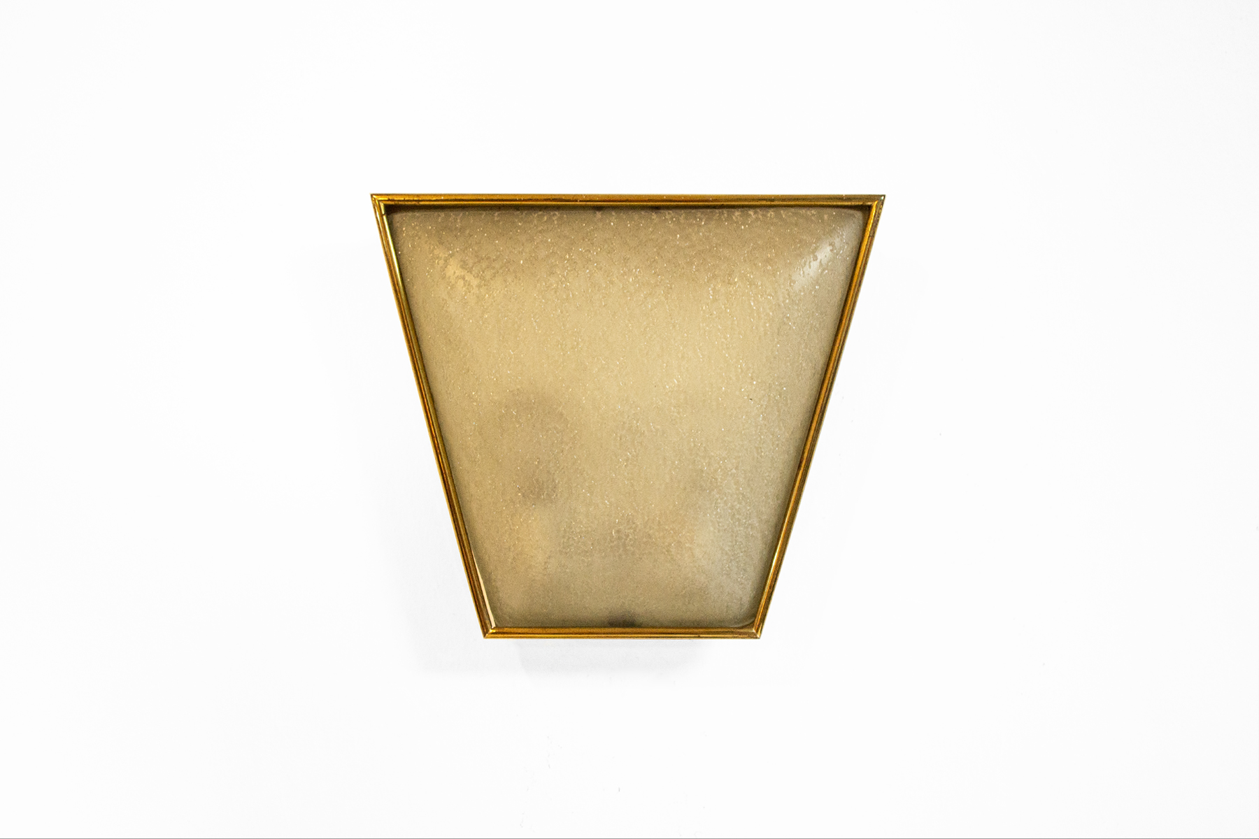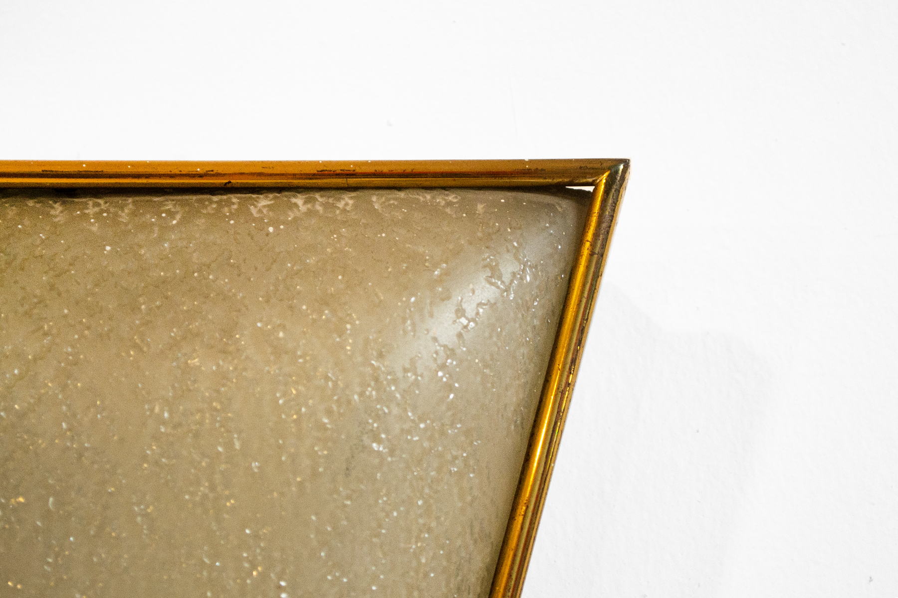 Rara lampada da soffitto o da parete in vetro curvo con cornice in ottone.