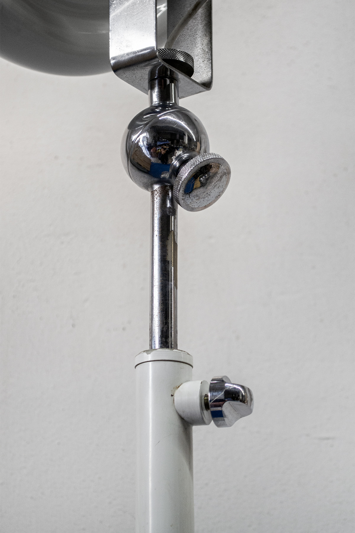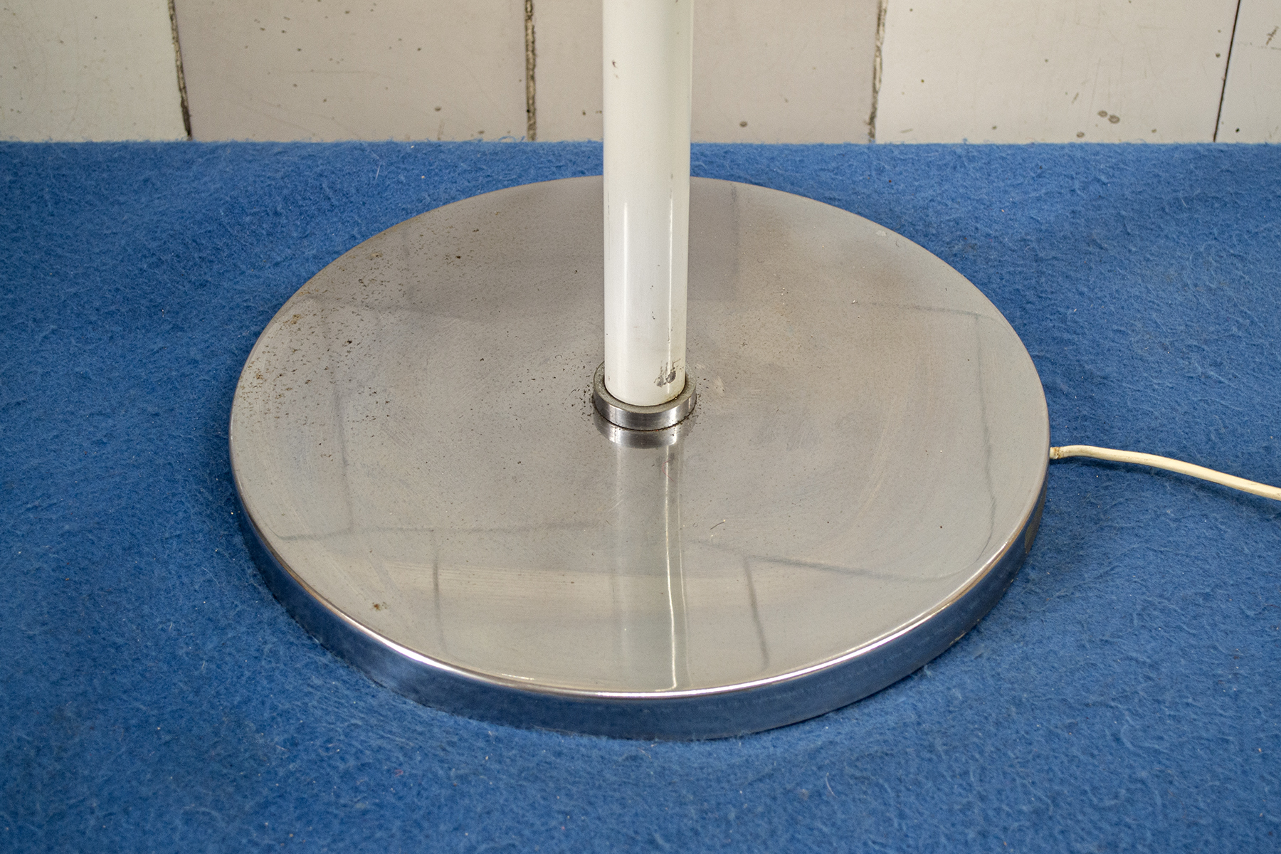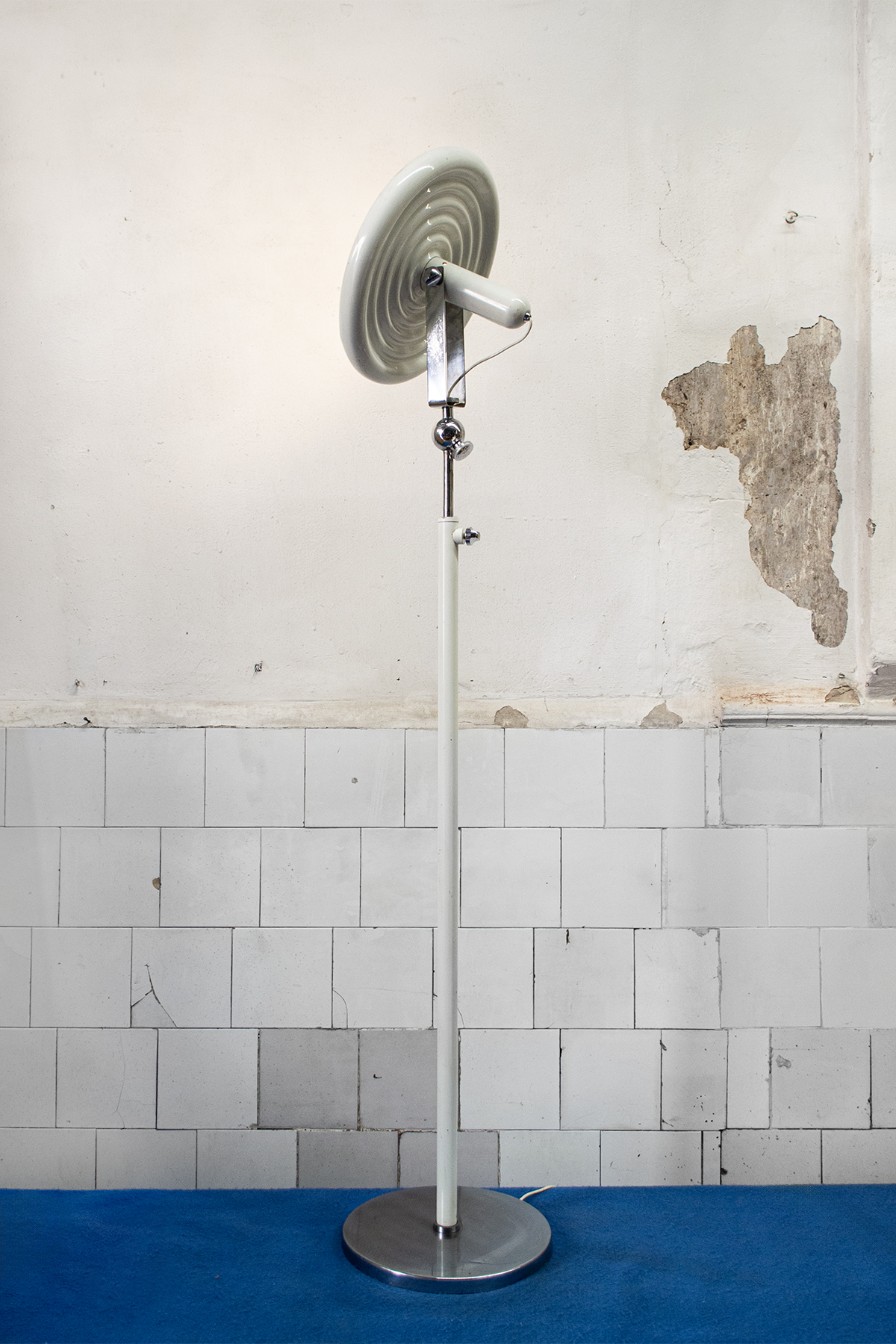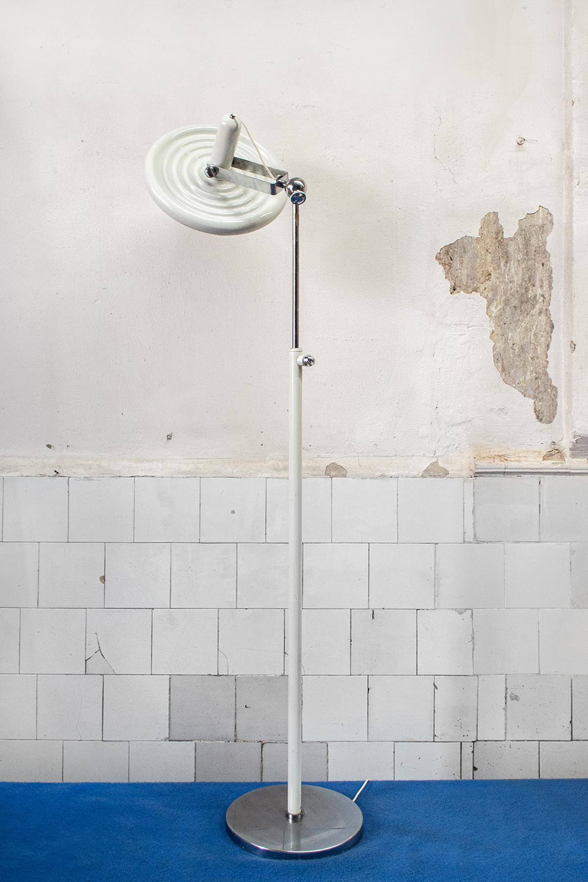 Lampada da terra in metallo laccato bianco.