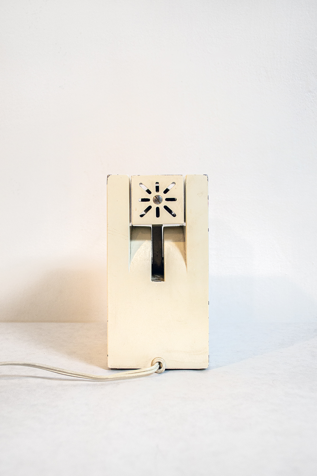 Lampada da tavolo con struttura in pressofusione di alluminio laccato bianco.