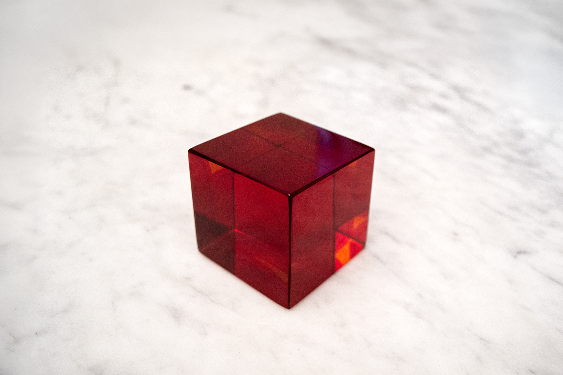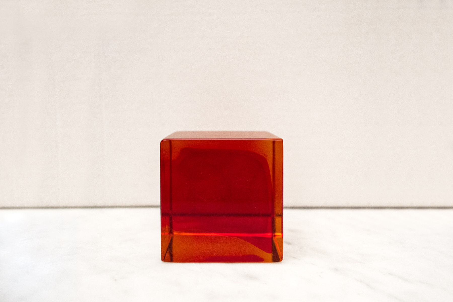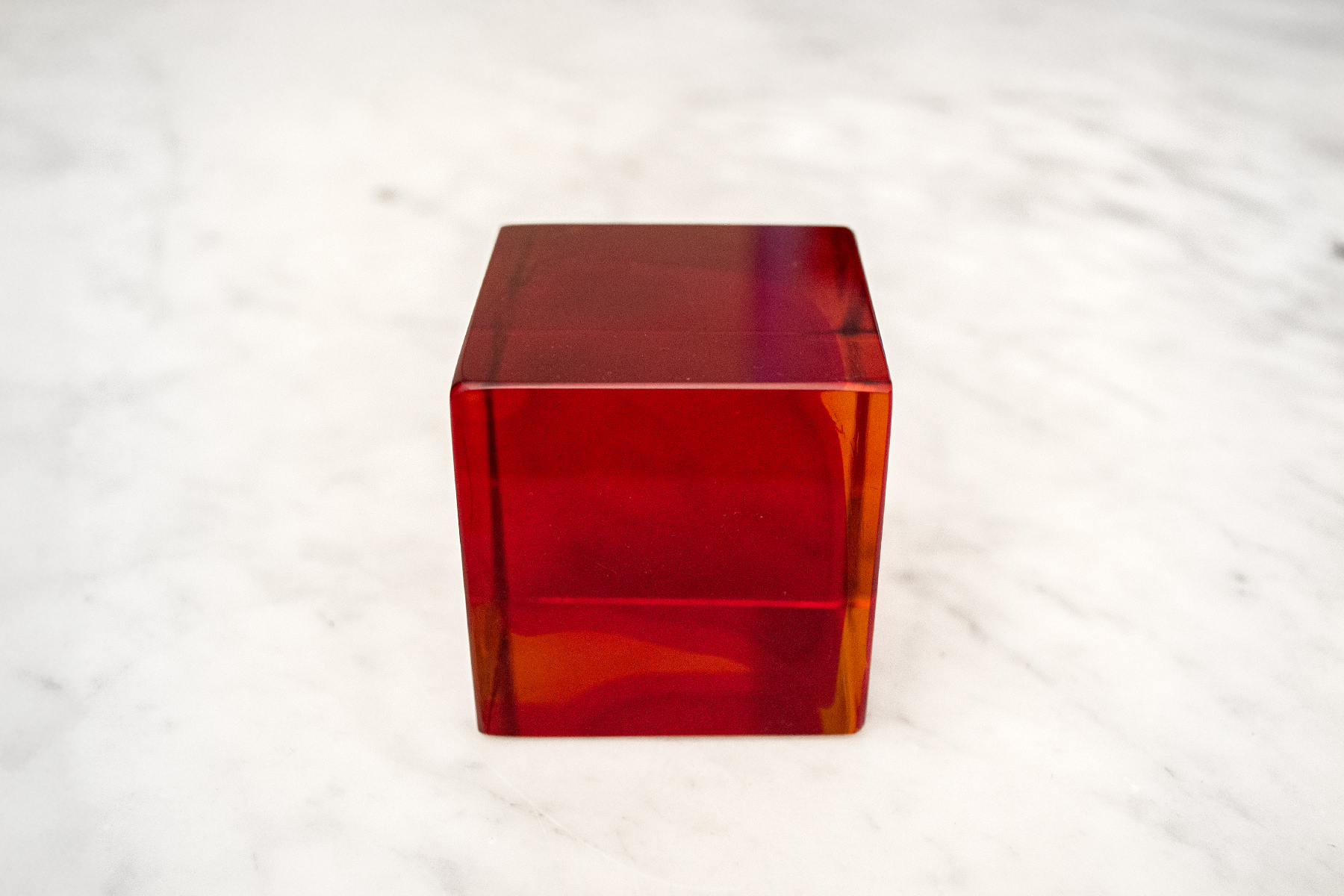 Cubo fermacarte in vetro massello rosso.