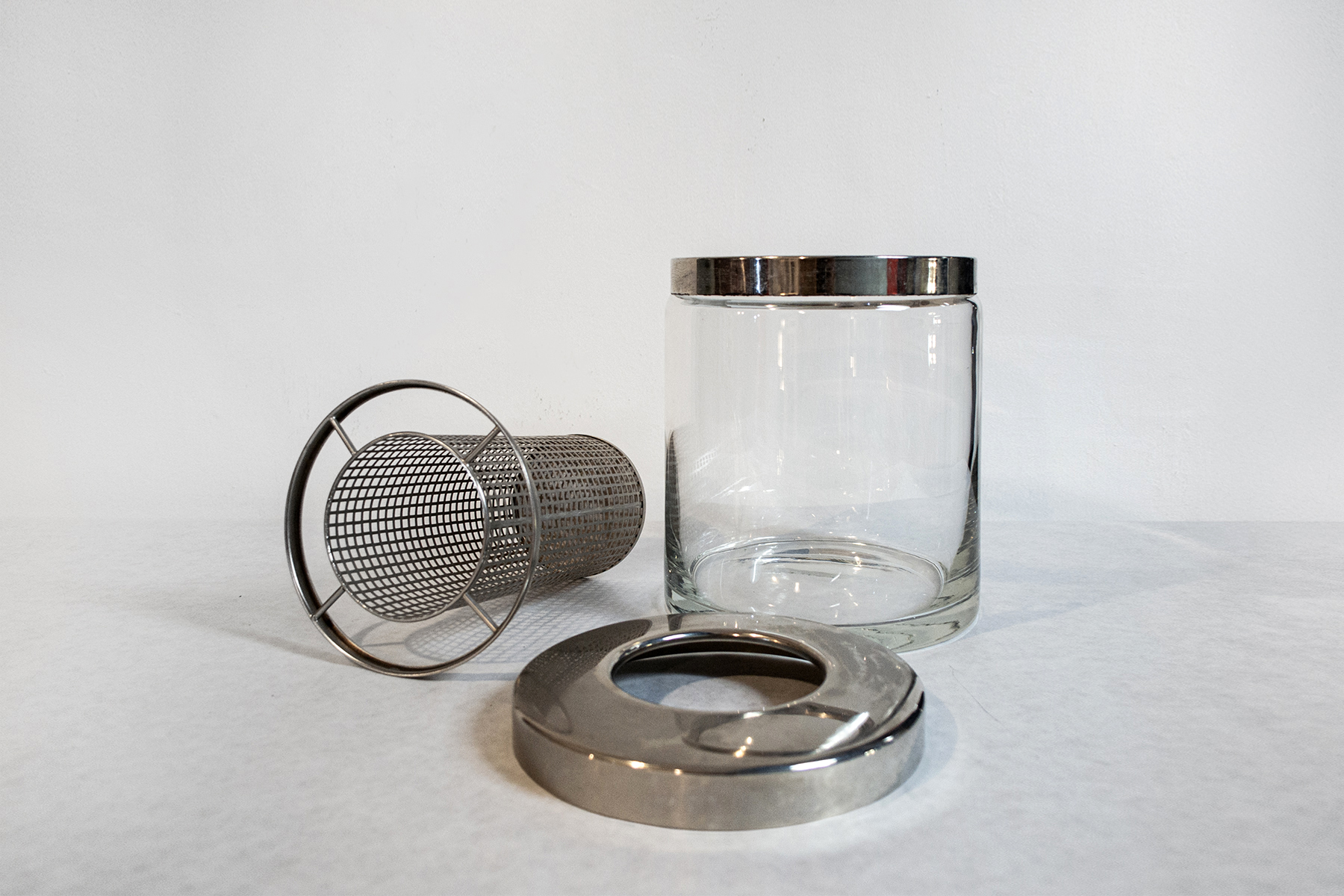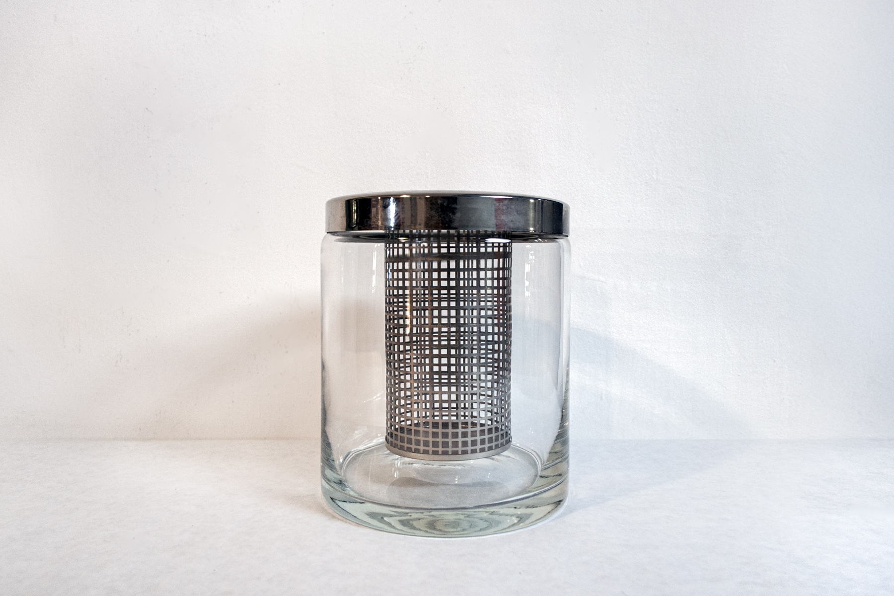 Glacette con struttura in vetro e dettagli in metallo cromato