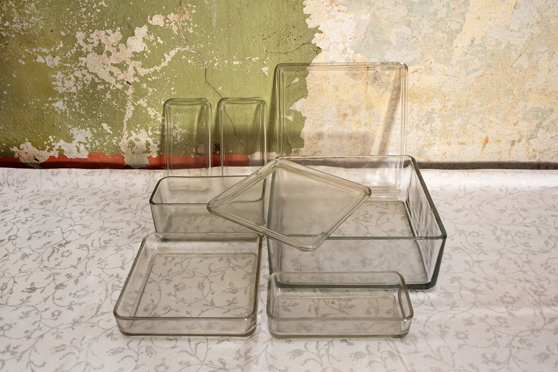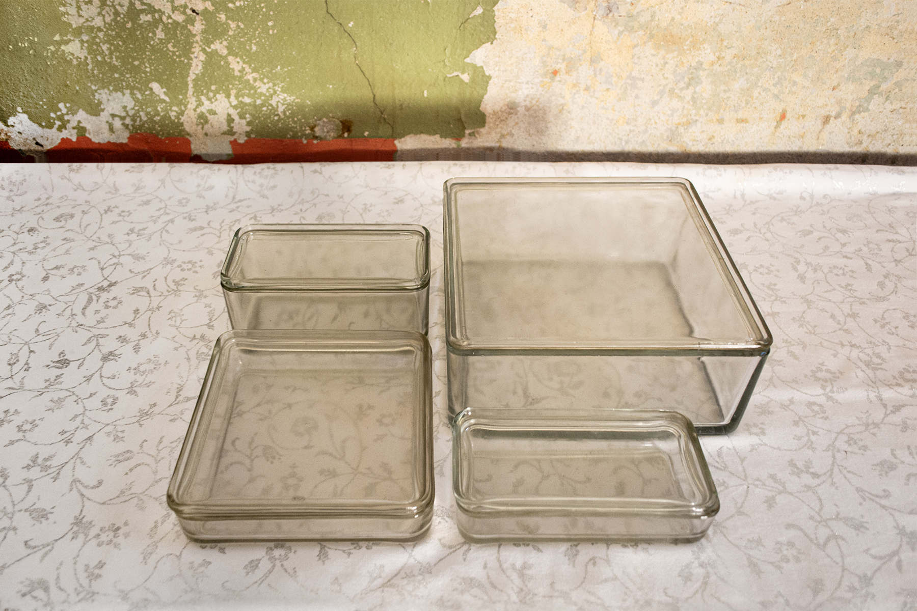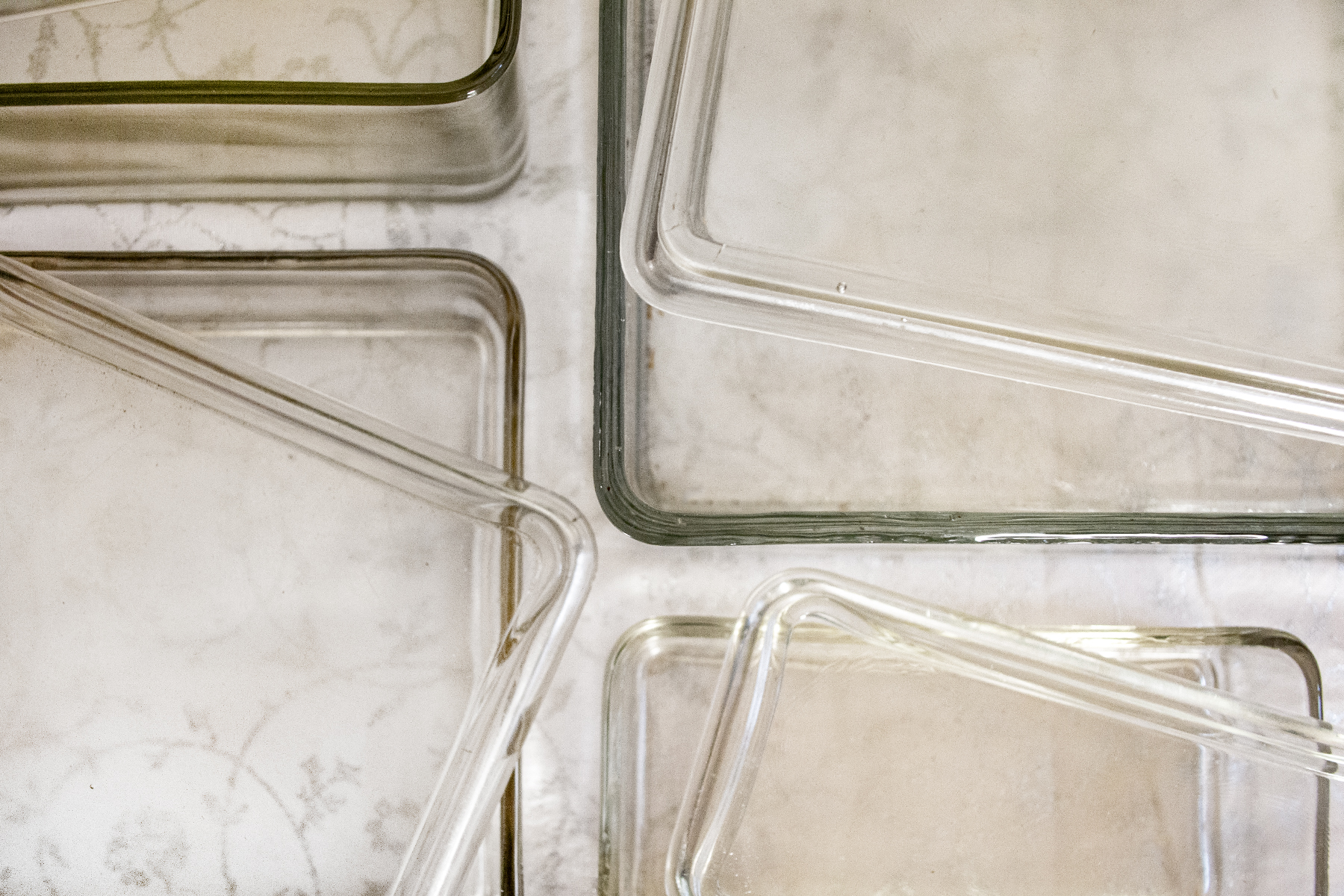 Contenitori con coperchio in vetro trasparente.