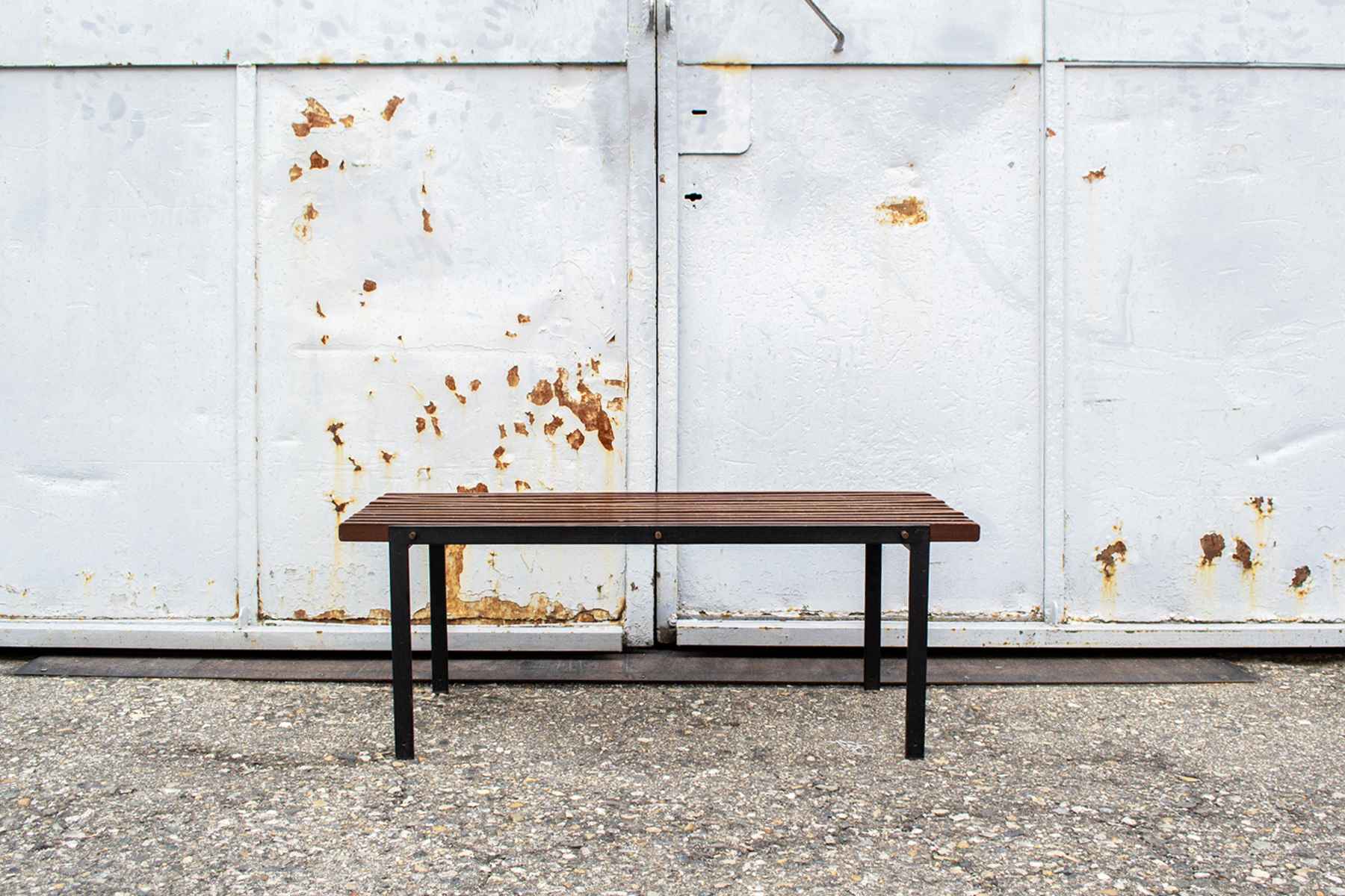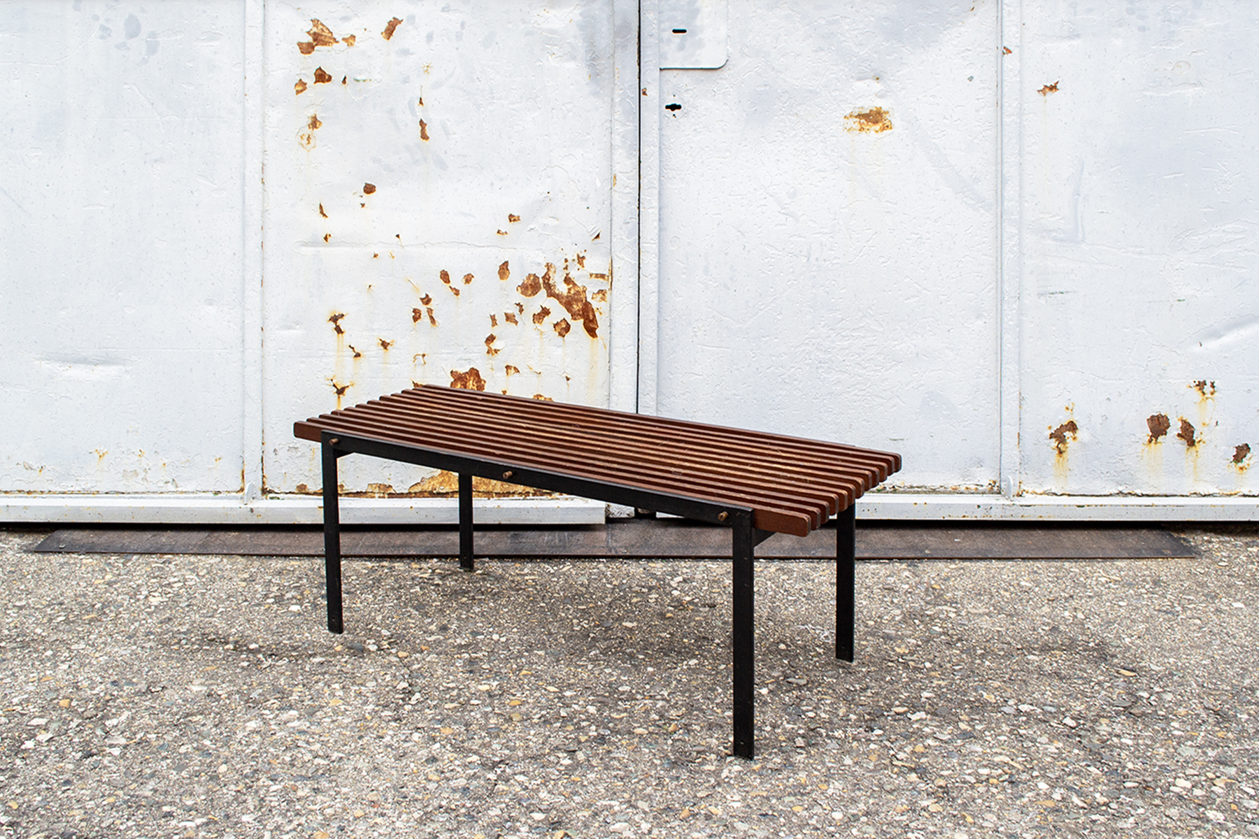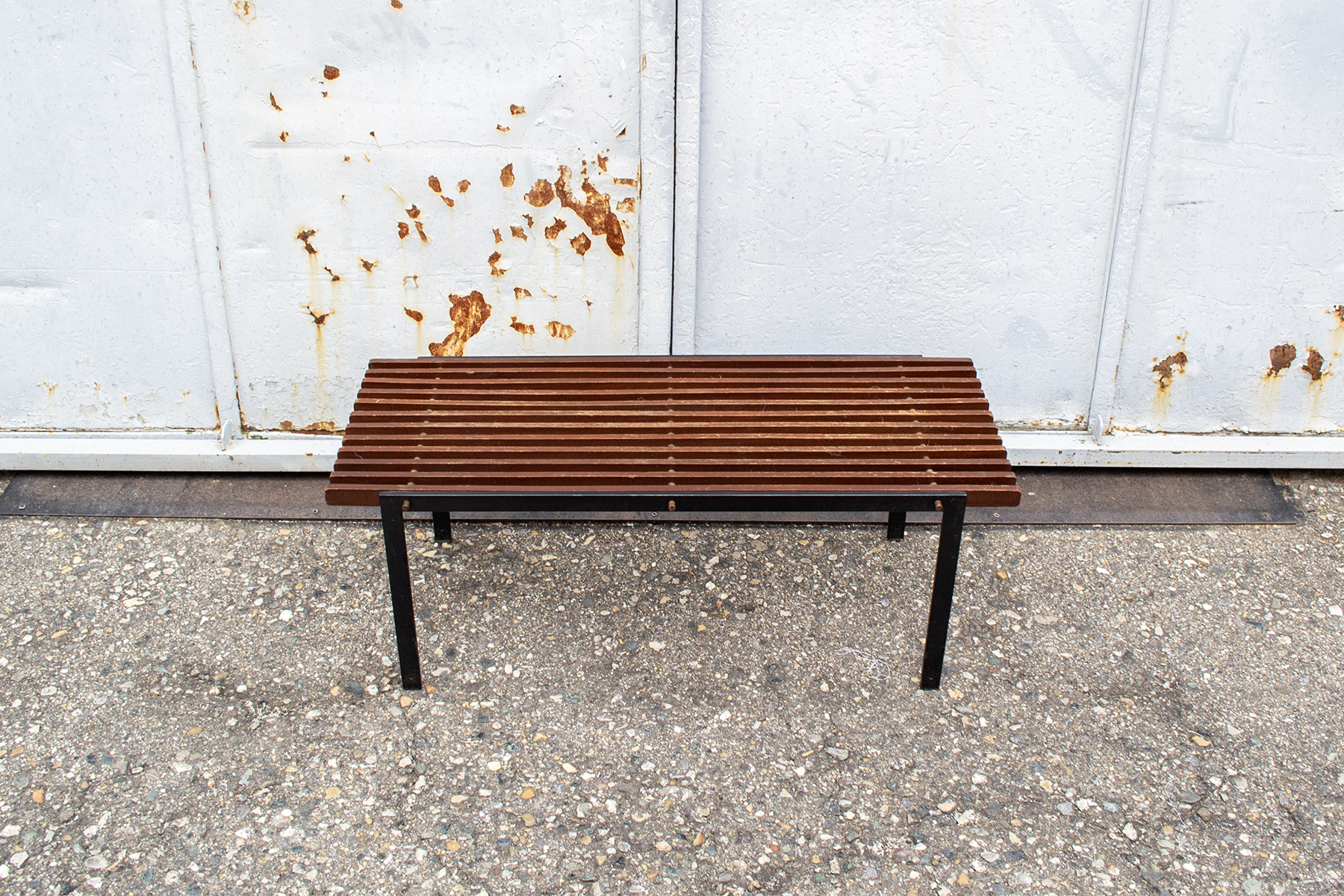 Panchetta con struttura in ferro e listelli in mogano.