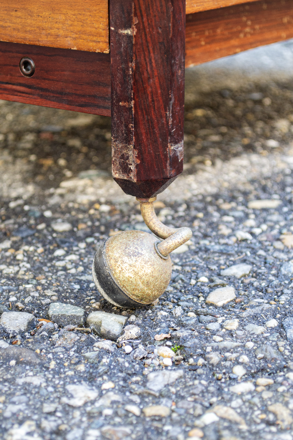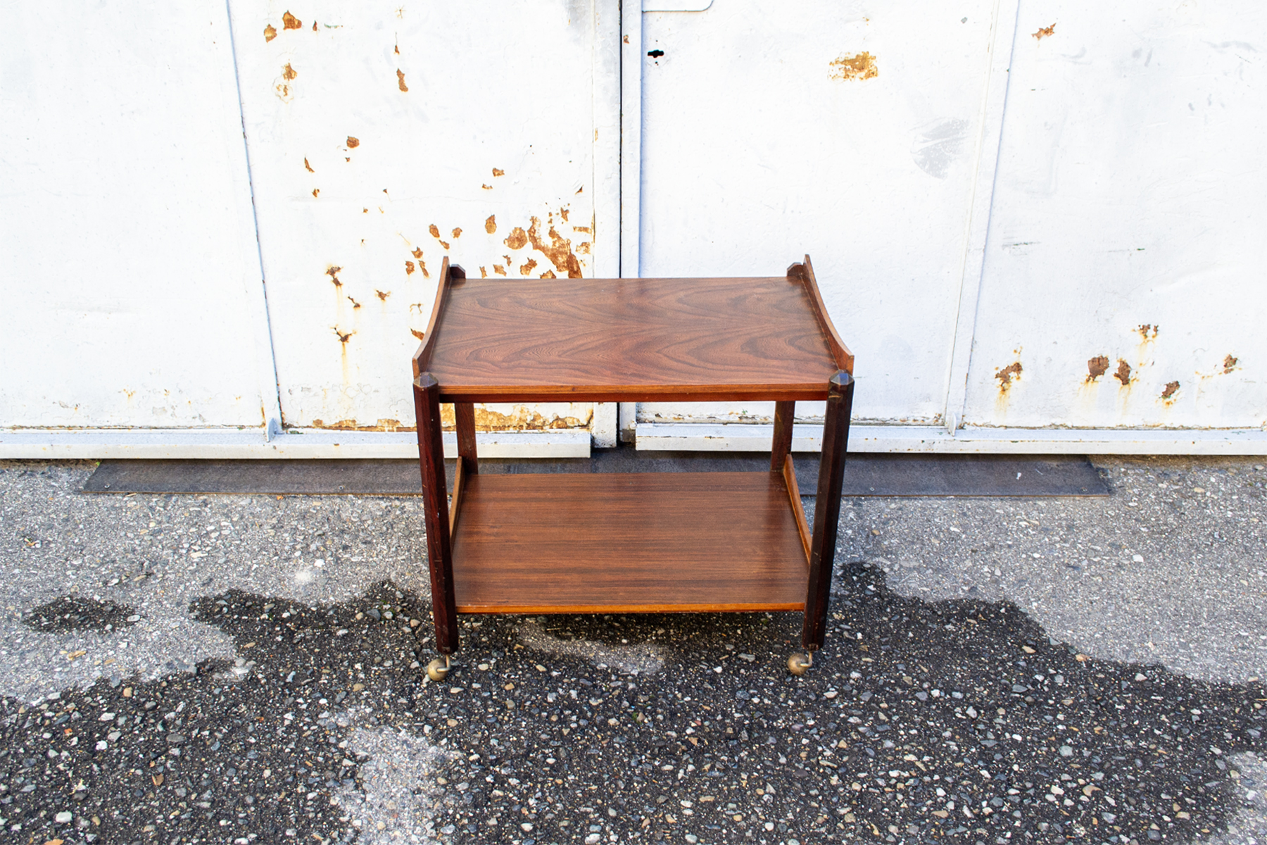 Carrello in palissandro con due vassoi asportabili, ruote in ottone.
