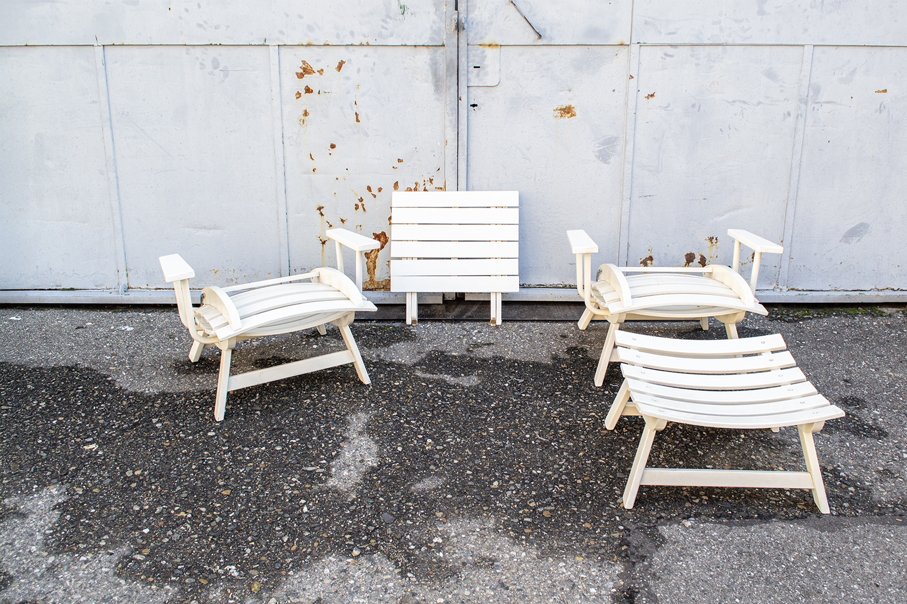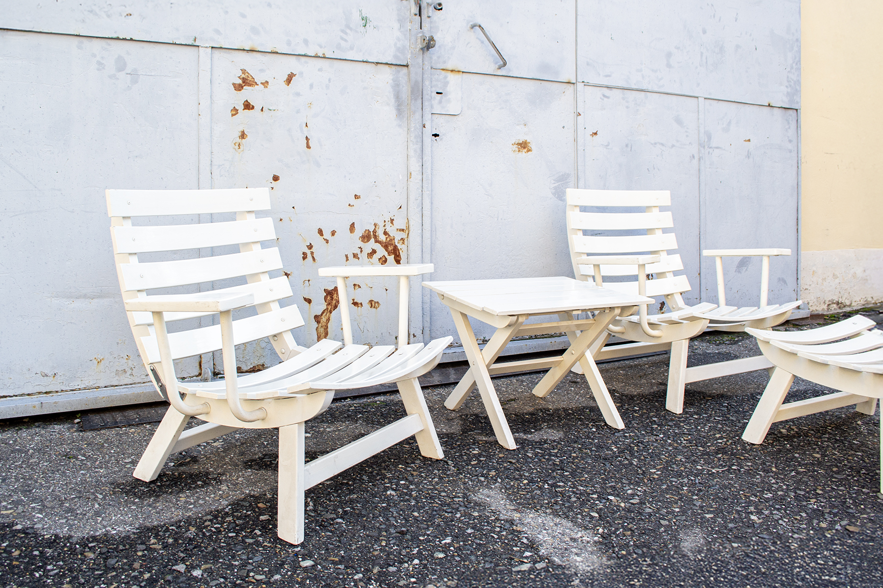 Set da giardino pieghevole in legno laccato, imbottiture rivestite in tessuto.